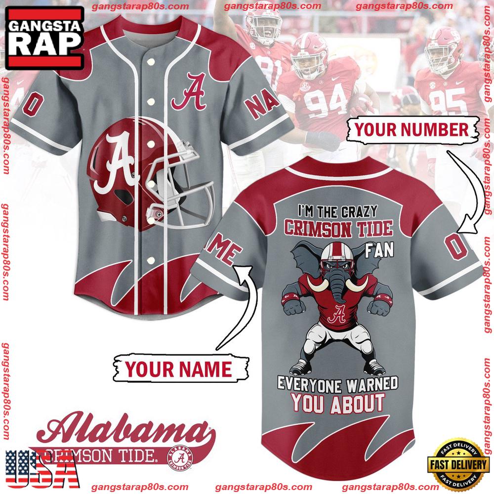 NCAA Custom Name Alabama Crimson Tide I Am The Crazy Crimson Tide Fans New Design Baseball Jersey