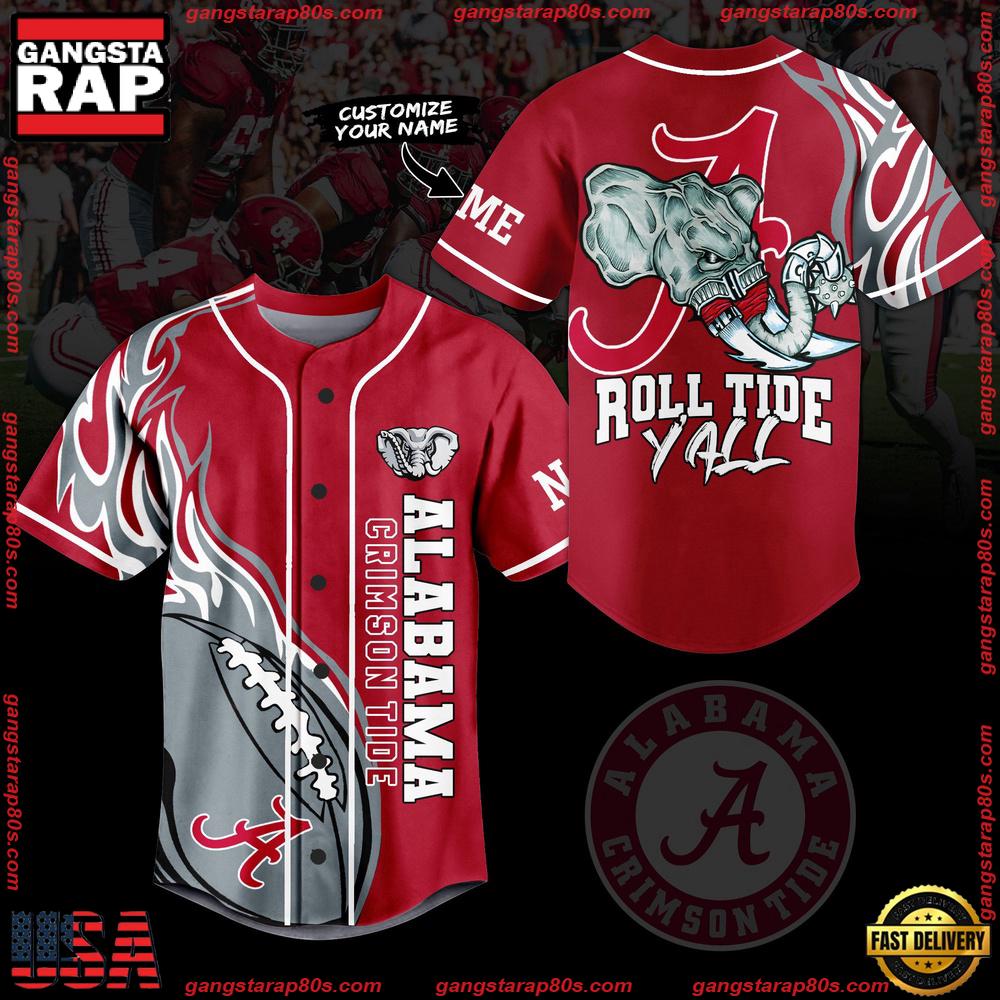NCAA Custom Name Alabama Crimson Tide Mascot Yall New Design Baseball Jersey