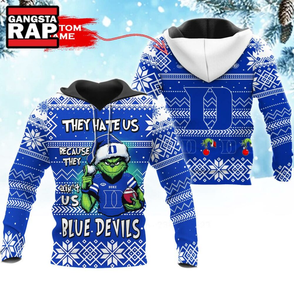 Product details: NCAA Duke Blue Devils They Hate US Special Grinch Snow Christmas Hoodie