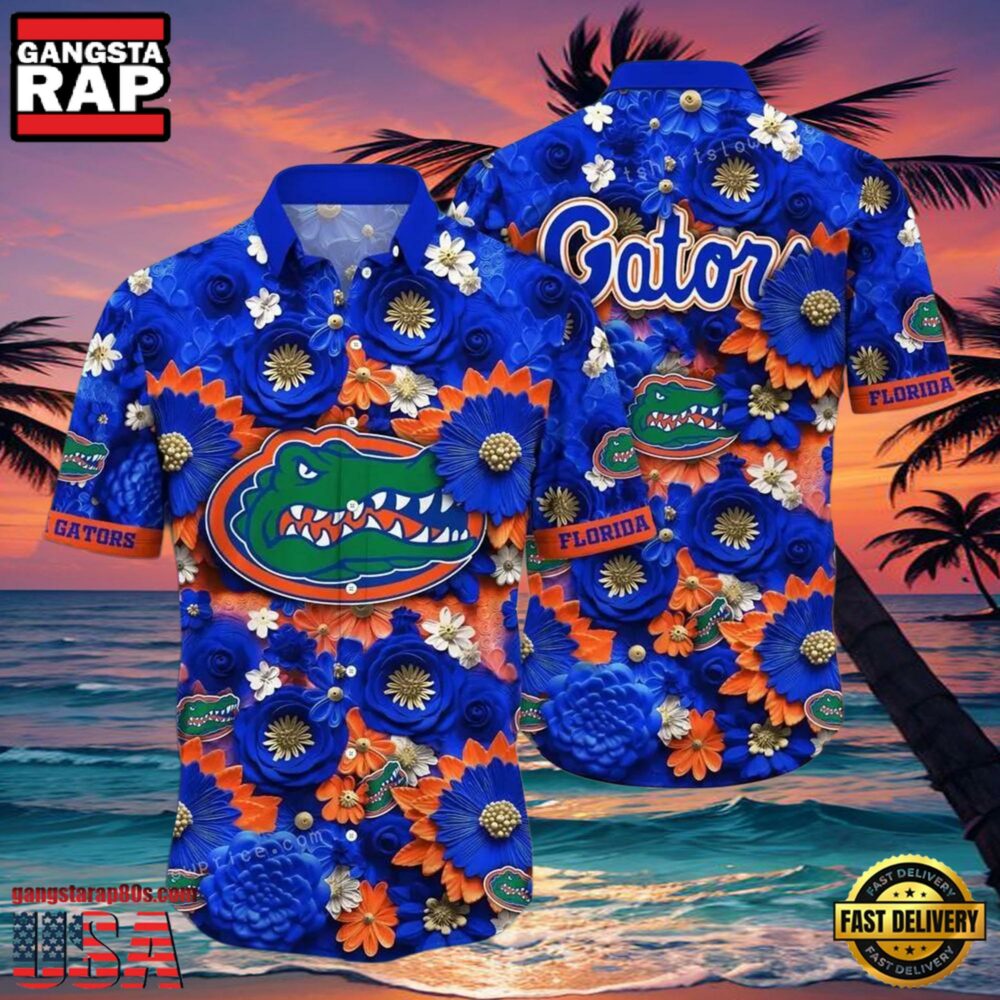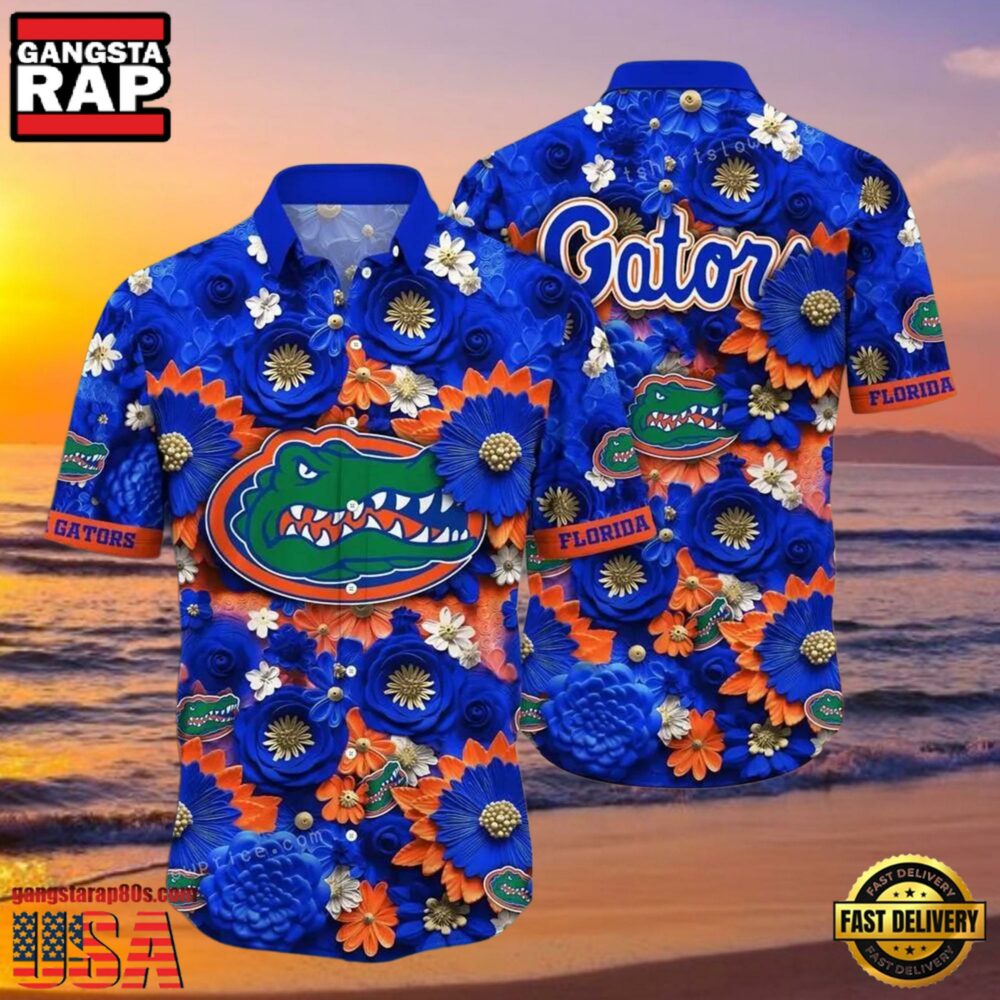 NCAA Florida Gators Flower Button Up Hawaiian Shirt 3D Shirt – Perfect Football Gifts for Dad
