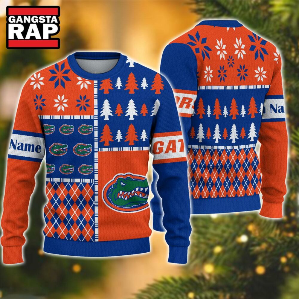 Product details: NCAA Florida Gators Football Team Xmas Tree Snow Custom Name Ugly Christmas Sweater