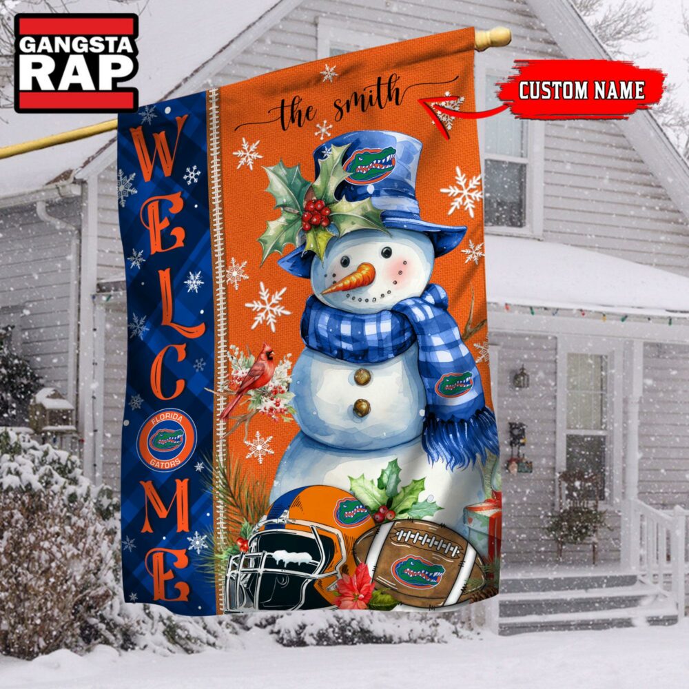 Photos Of NCAA Florida Gators Snownan Football Team Christmas Flag, Sport Christmas Flag