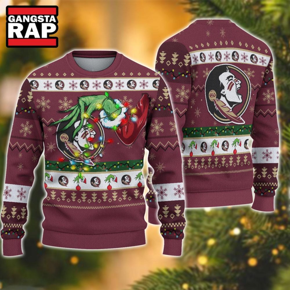 Photos Of Free NCAA Florida State Seminoles Grinch Hand Ugly Christmas Sweater