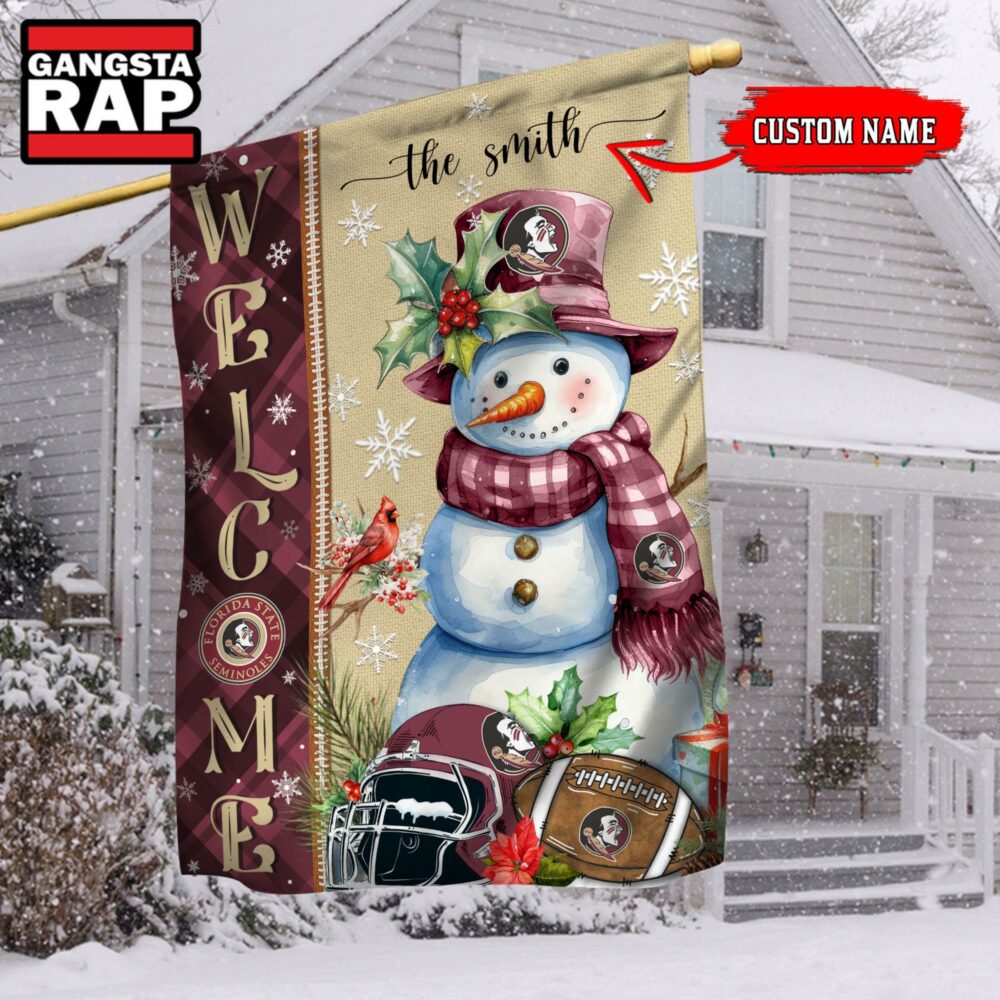 Photos Of NCAA Florida State Seminoles Snownan Football Team Christmas Flag, Sport Christmas Flag