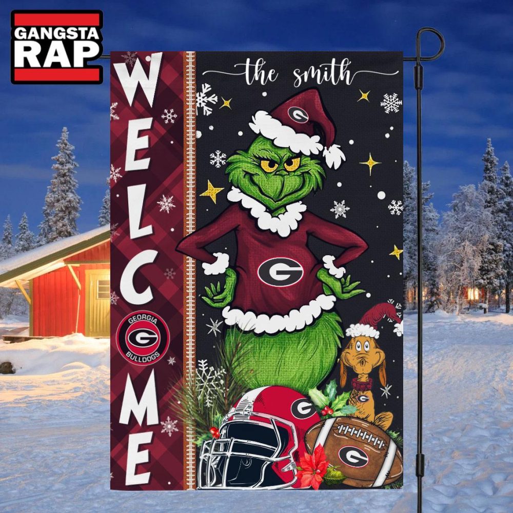 NCAA Georgia Bulldogs Football Grinch Christmas Custom Flag This high-quality flag is crafted from durable, weather-resistant fabric, perfect for indoor or outdoor display. Featuring vibrant colors and sharp detail, it adds a bold statement to any space, whether flying in your yard or hanging on a wall, celebrating your pride or personal style.