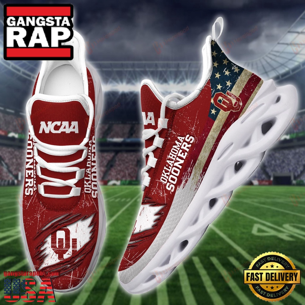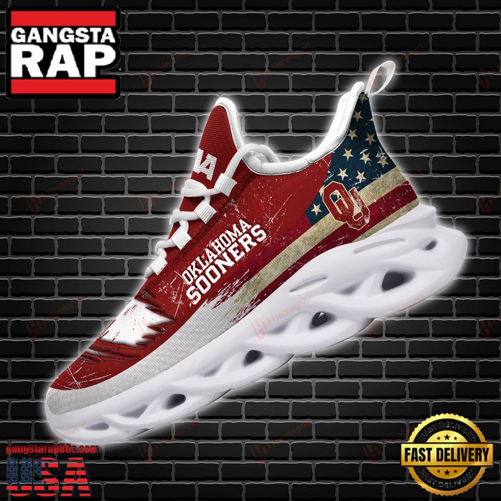 NCAA [Hot Sale] Oklahoma Sooners American Flag Unique Design Max Soul Shoes Running Sneakers