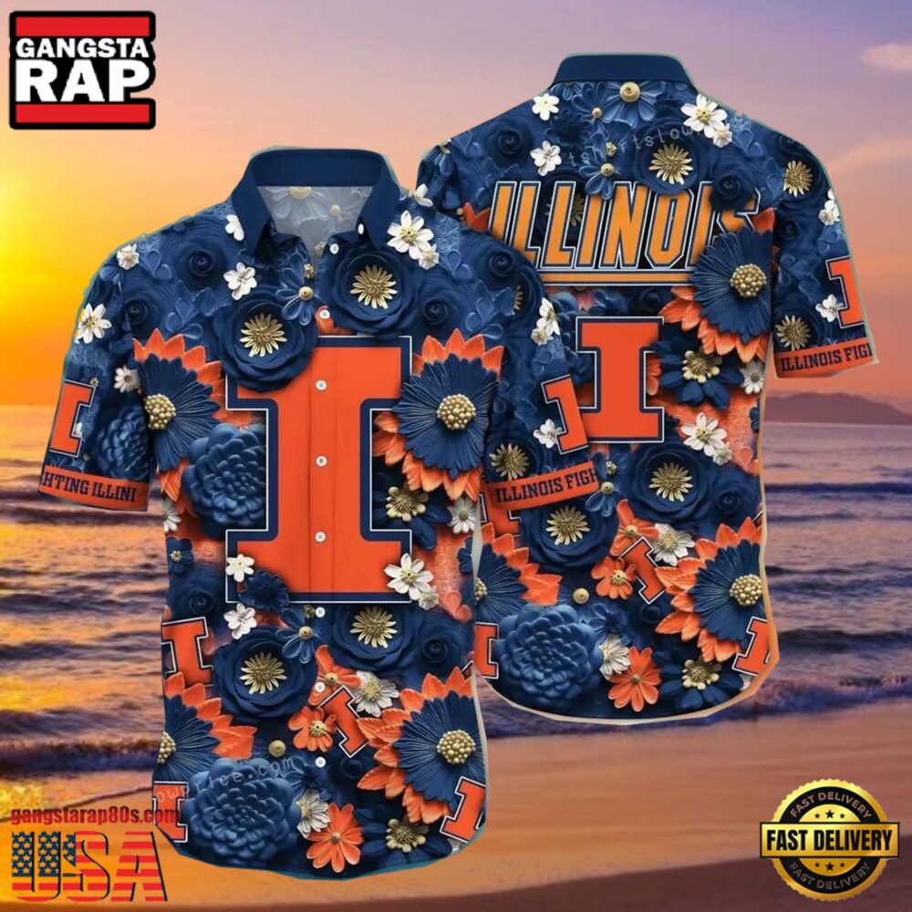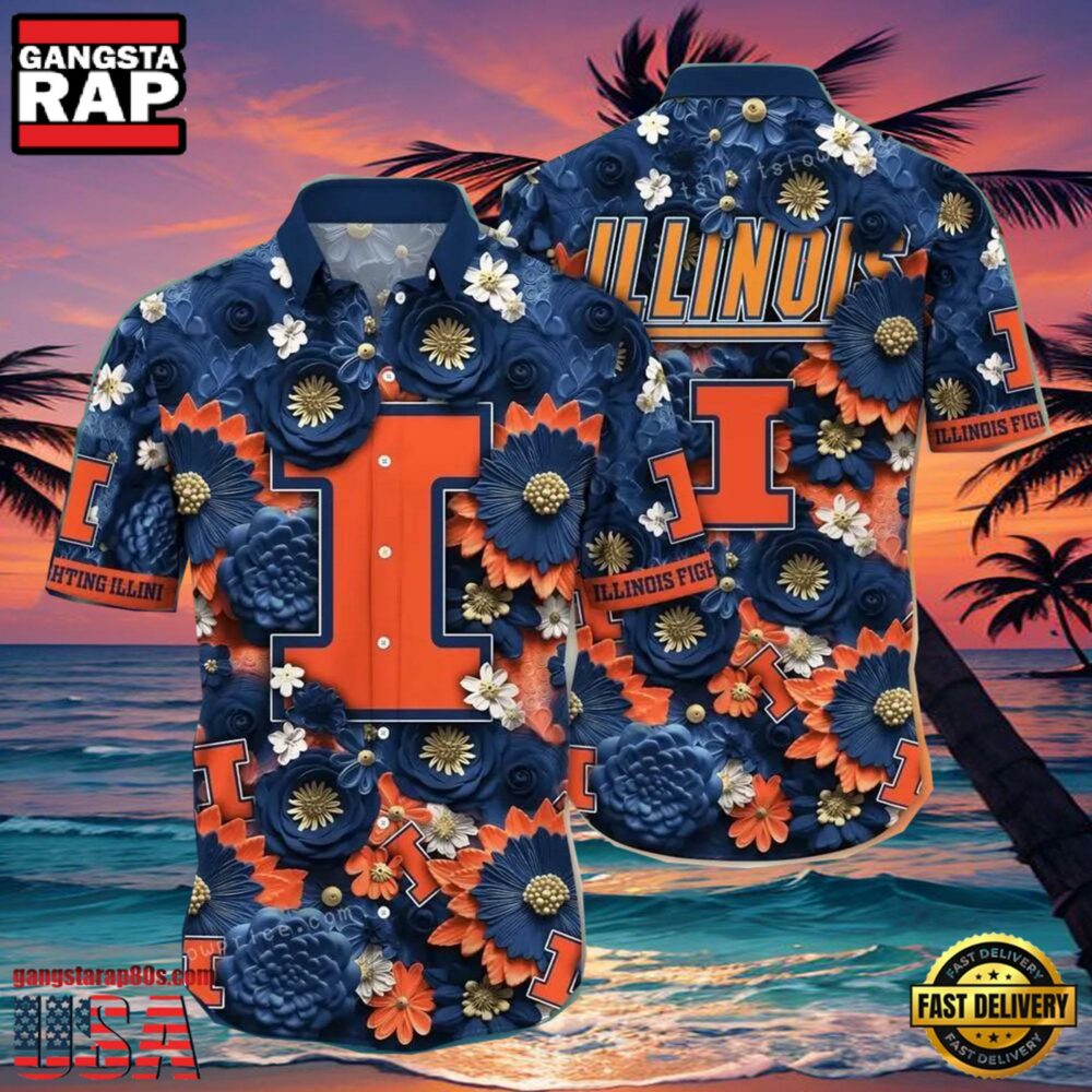 Experience Game Day Like Never Before with the NCAA Illinois Fighting Illini Flower Button Up Hawaiian Shirt 3D Shirt