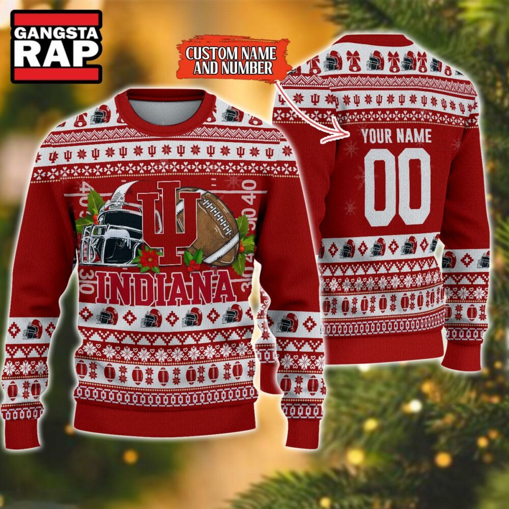 Product details: NCAA Indiana Hoosiers Football Team Custom Name Number New Ugly Christmas Sweater