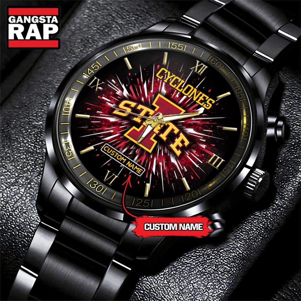 Elevate your fan merchandise game and showcase your Iowa State pride with the NCAA Iowa State Cyclones Football Team Logo Design Black Watch, where style meets sportsmanship in every tick.