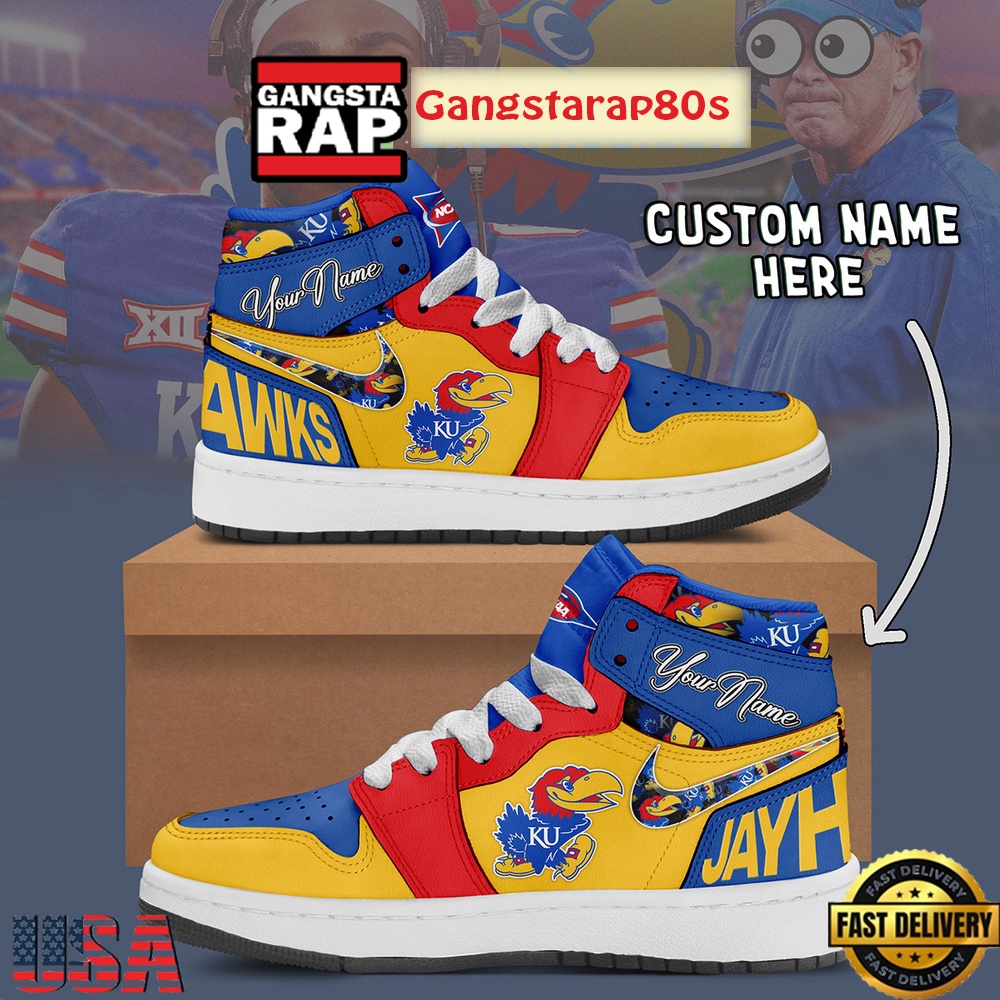 NCAA Kansas Jayhawks Custom Name Air Jordan 1 Shoes Running Sneakers