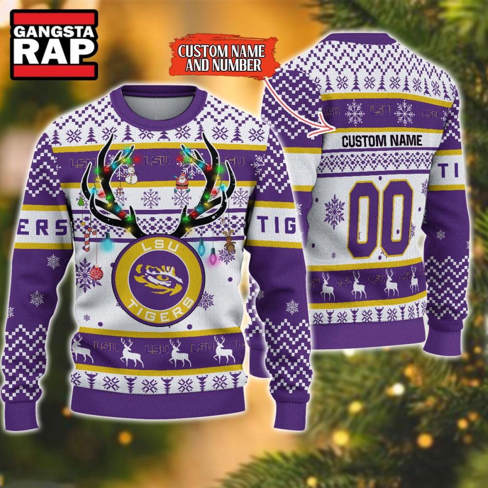 Photos Of Free NCAA LSU Tigers Design Logo Team Reindeer Light Ugly Christmas Sweater