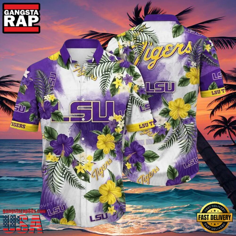 NCAA LSU Tigers Flower Hawaiian Shirt Outfit 3D Shirt