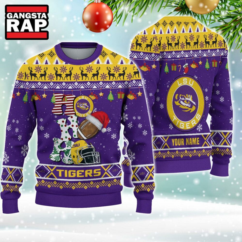 NCAA LSU Tigers Football Team HO HO HO Santa Claus Ugly Christmas Sweater Introducing our Ugly Christmas Sweater, the ultimate festive statement piece. Made from soft, comfortable fabric, it features fun and quirky holiday-themed designs that are sure to spread cheer. Perfect for holiday parties or cozying up by the fire, this sweater adds a playful touch to your winter wardrobe. Embrace the holiday spirit with our Ugly Christmas Sweater, where joy meets style.