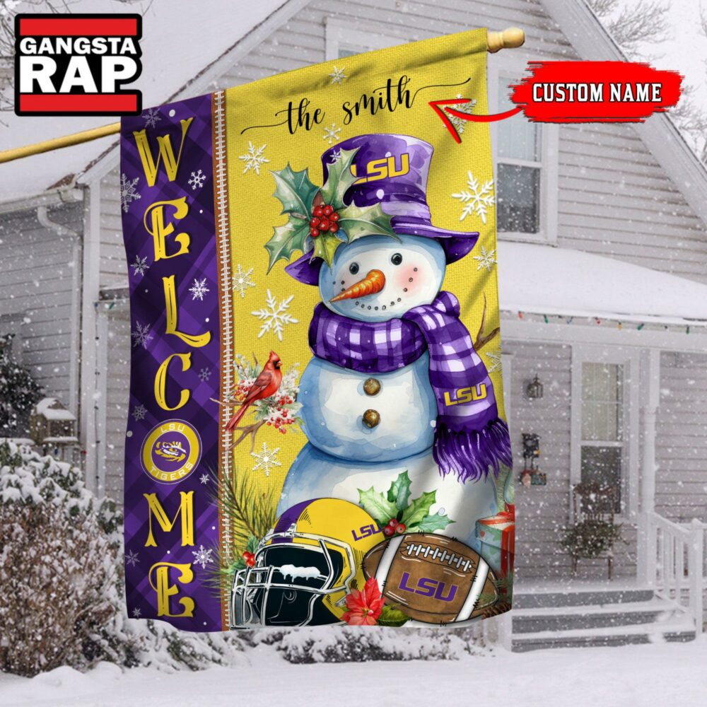 Photos Of NCAA LSU Tigers Snownan Football Team Christmas Flag, Sport Christmas Flag