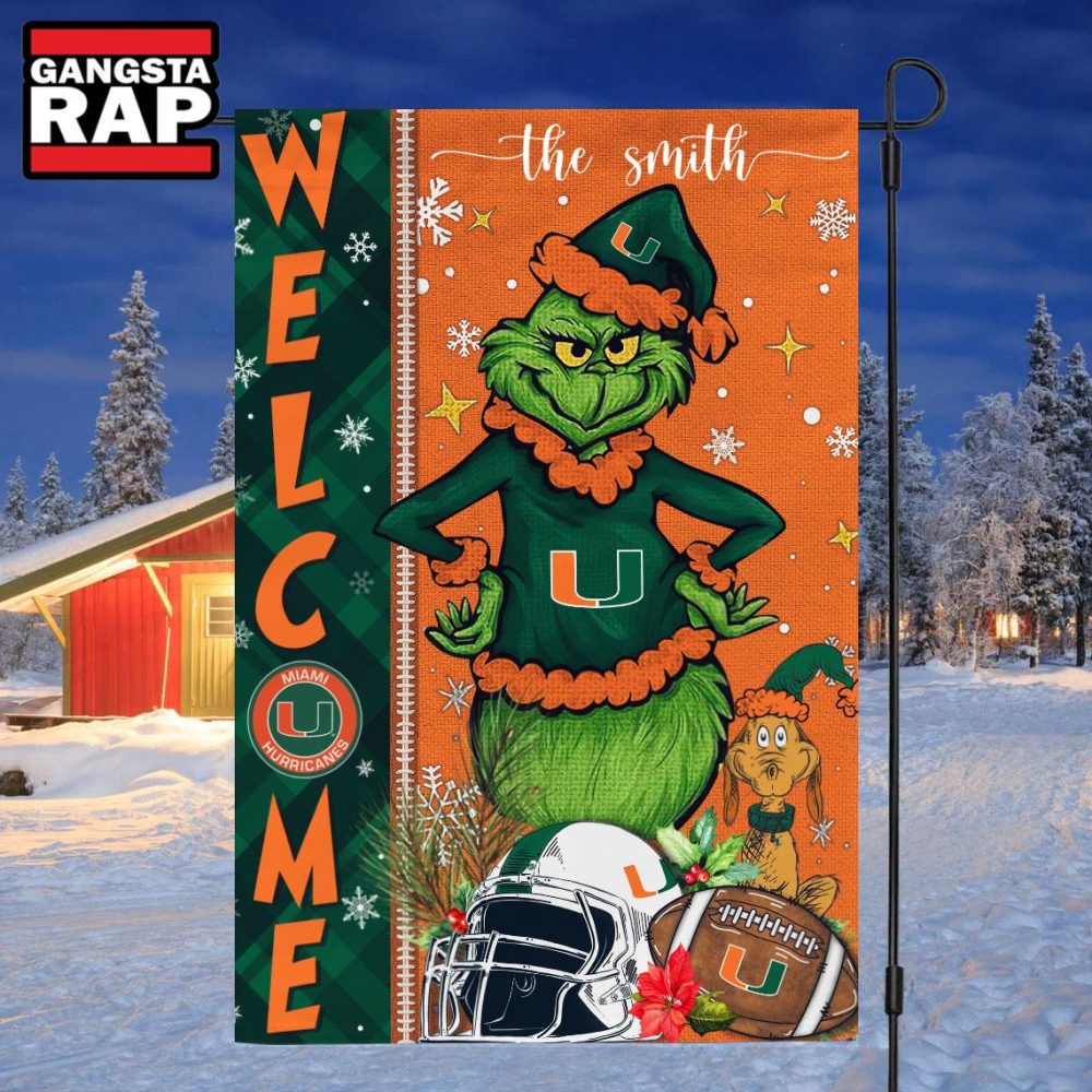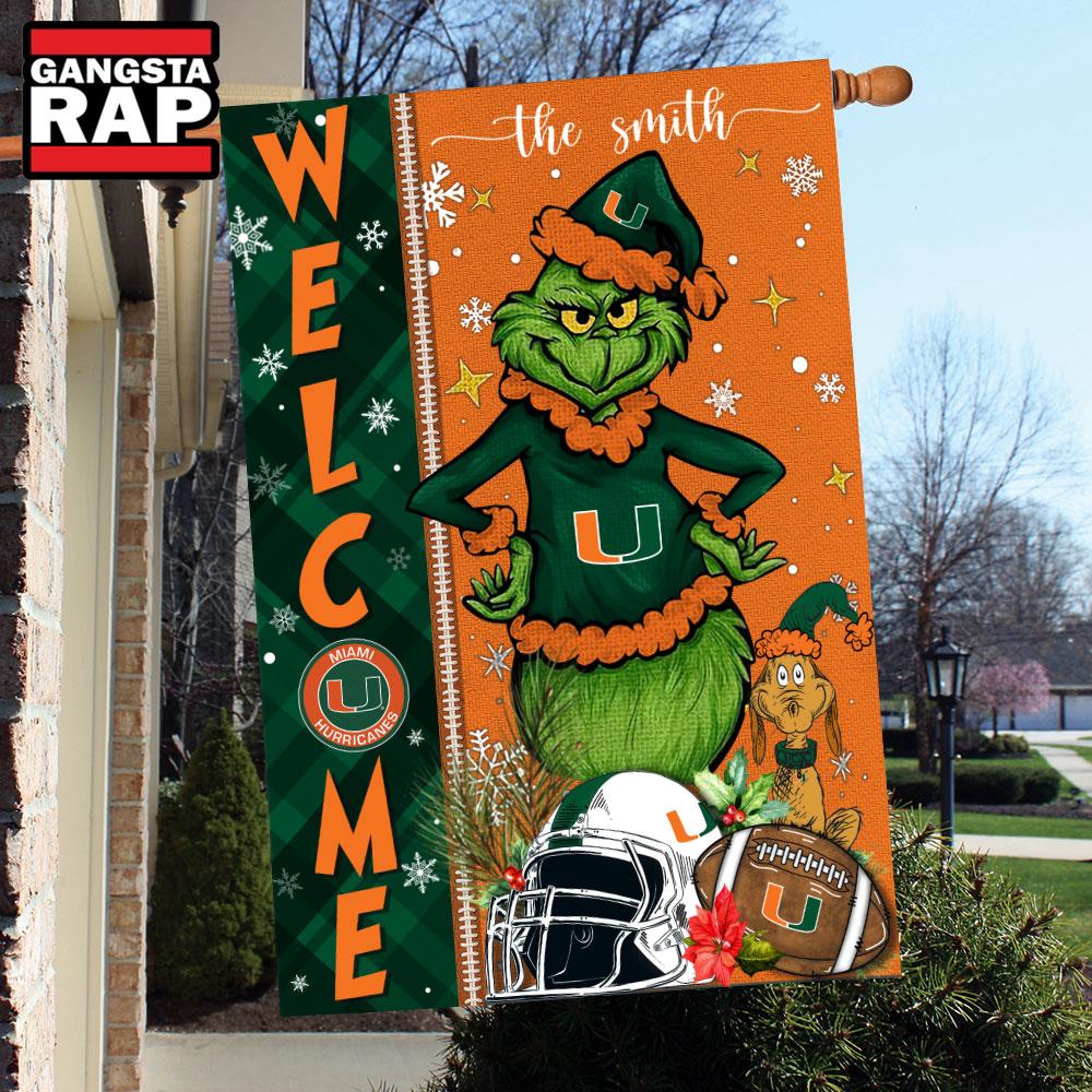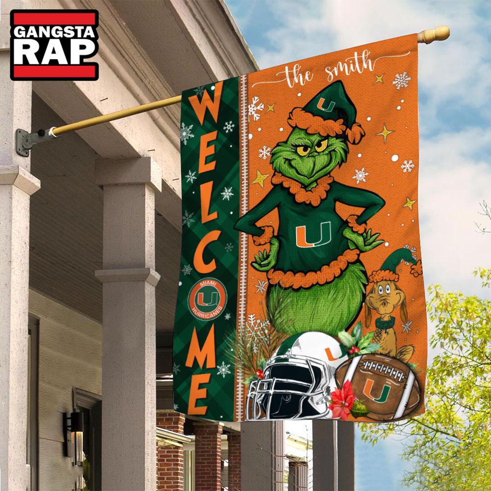 Product details: NCAA Miami Hurricanes Football Grinch Christmas Custom Flag