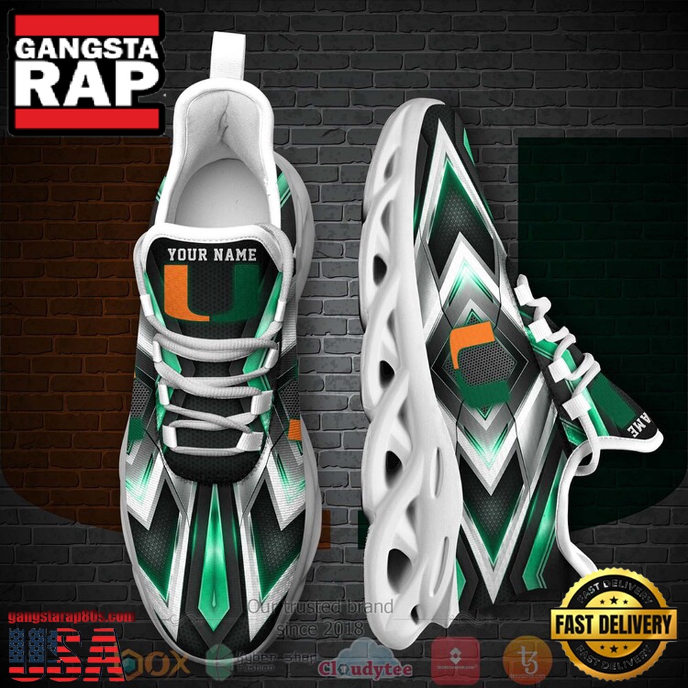 NCAA Miami Hurricanes Football Team Custom Name Clunky Unique Design Max Soul Shoes Running Sneakers