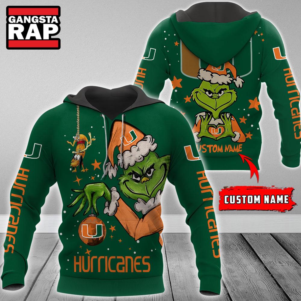 Photos Of Free NCAA Miami Hurricanes Football Team The Grinch Christmas Hoodie