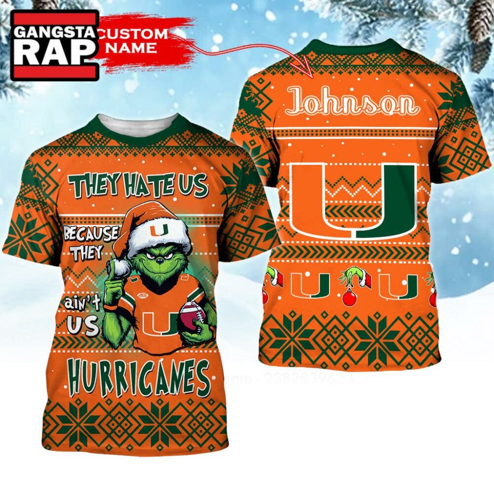 Photos Of NCAA Miami Hurricanes They Hate US Special Grinch Snow Christmas T Shirt