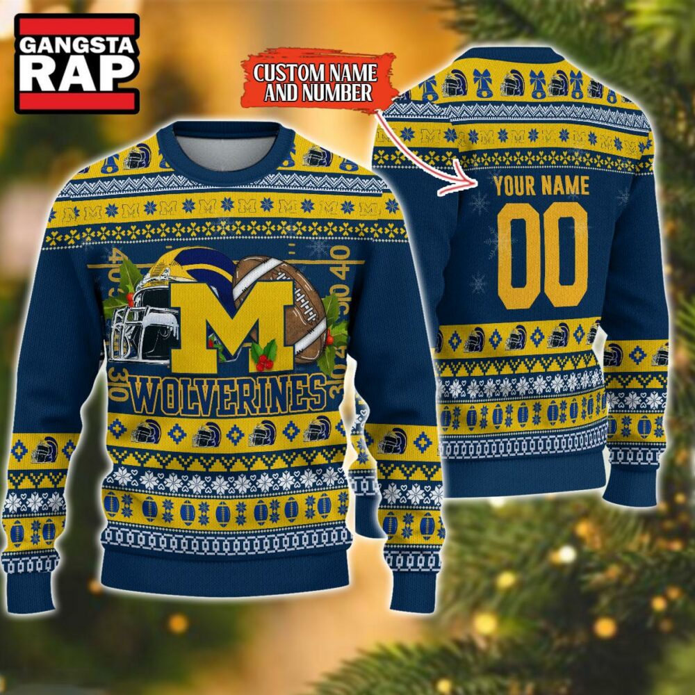 Product details: NCAA Michigan Wolverines Football Team Custom Name Number New Ugly Christmas Sweater