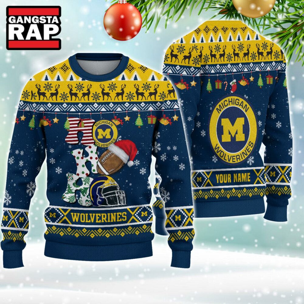 - Michigan Wolverines Football Team Logo Custom Name NCAA Ugly Christmas Sweater