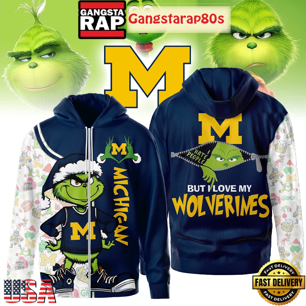 NCAA Michigan Wolverines Funny Grinch Football 2025-2026 Zip Hoodie Shirt