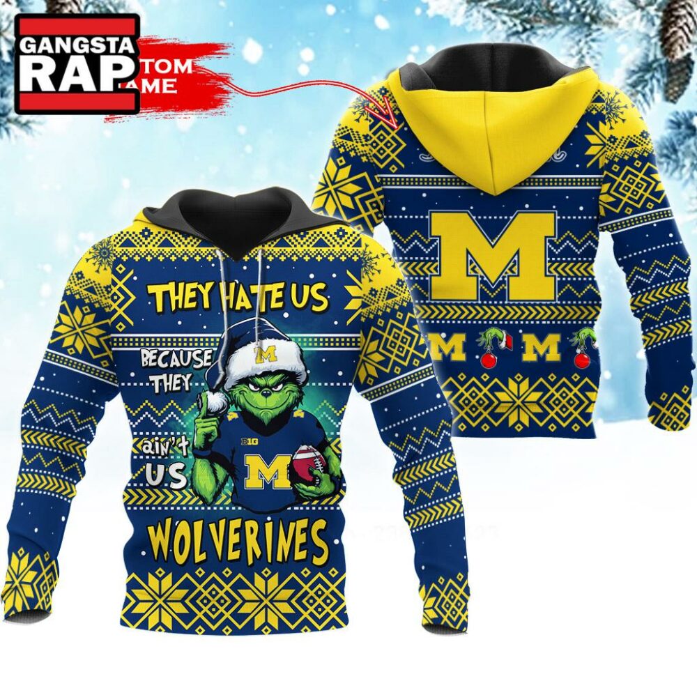 NCAA Michigan Wolverines They Hate US Special Grinch Snow Christmas Hoodie Introducing our 3D Shirt, where cutting-edge design meets comfort. Crafted from high-quality, breathable fabric, it features stunning 3D prints that add depth and vibrancy to your wardrobe. Perfect for making a bold statement, this shirt combines style and innovation. Elevate your fashion game with our eye-catching 3D Shirt, designed to turn heads.