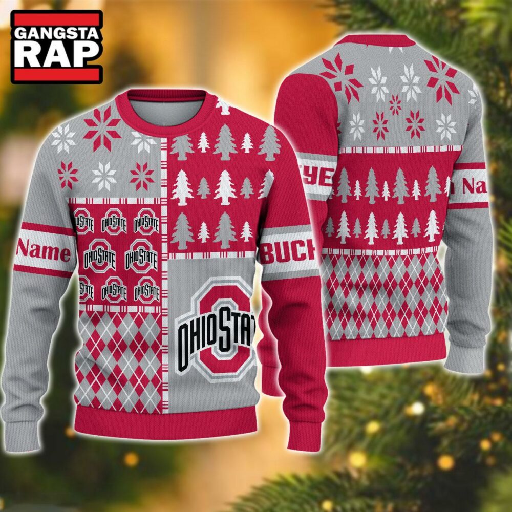 Product details: NCAA Ohio State Buckeyes Football Team Xmas Tree Snow Custom Name Ugly Christmas Sweater