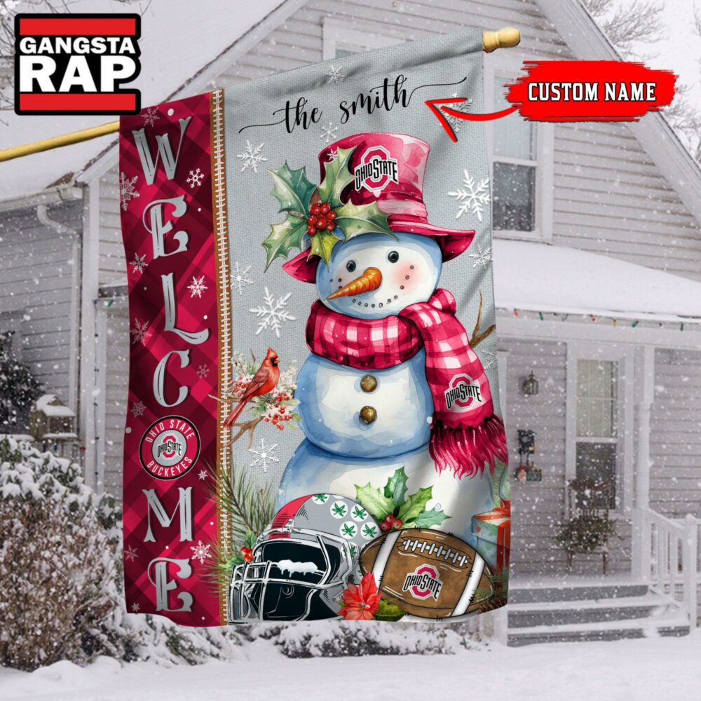 NCAA Ohio State Buckeyes Snownan Football Team Christmas Flag, Sport Christmas Flag This high-quality flag is crafted from durable, weather-resistant fabric, perfect for indoor or outdoor display. Featuring vibrant colors and sharp detail, it adds a bold statement to any space, whether flying in your yard or hanging on a wall, celebrating your pride or personal style.