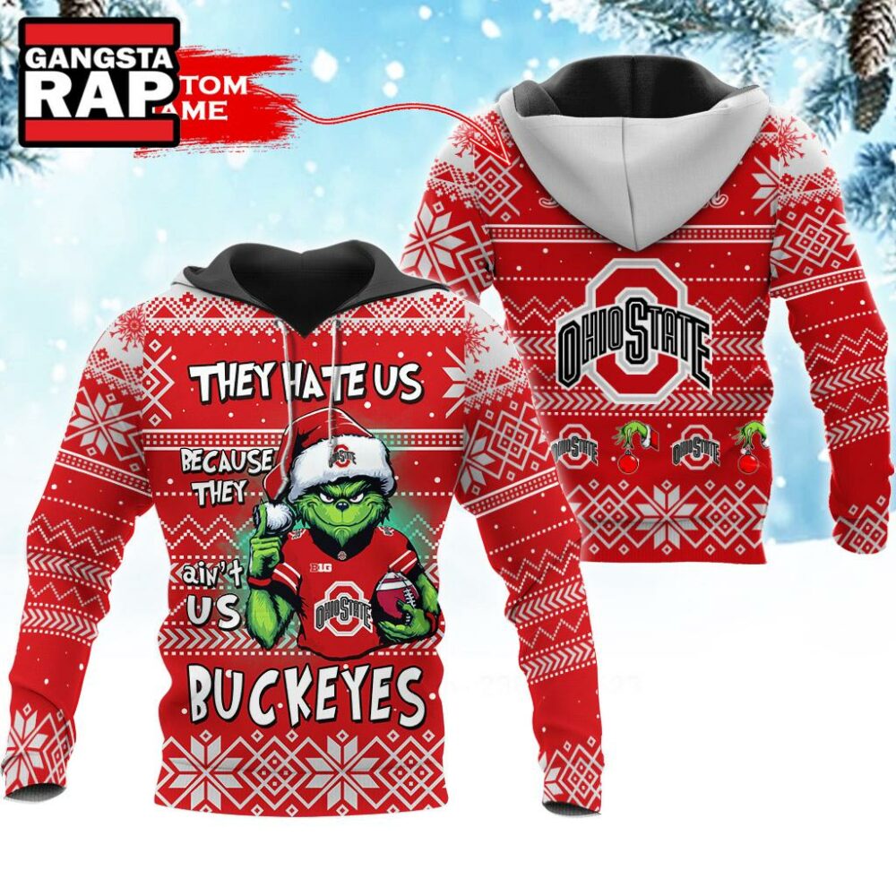 Product details: NCAA Ohio State Buckeyes They Hate US Special Grinch Snow Christmas Hoodie