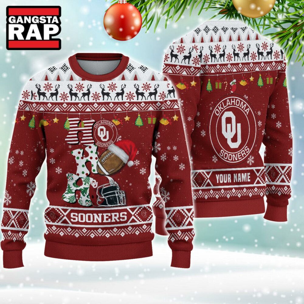 NCAA Oklahoma Sooners Football Team HO HO HO Santa Claus Ugly Christmas Sweater Introducing our Ugly Christmas Sweater, the ultimate festive statement piece. Made from soft, comfortable fabric, it features fun and quirky holiday-themed designs that are sure to spread cheer. Perfect for holiday parties or cozying up by the fire, this sweater adds a playful touch to your winter wardrobe. Embrace the holiday spirit with our Ugly Christmas Sweater, where joy meets style.