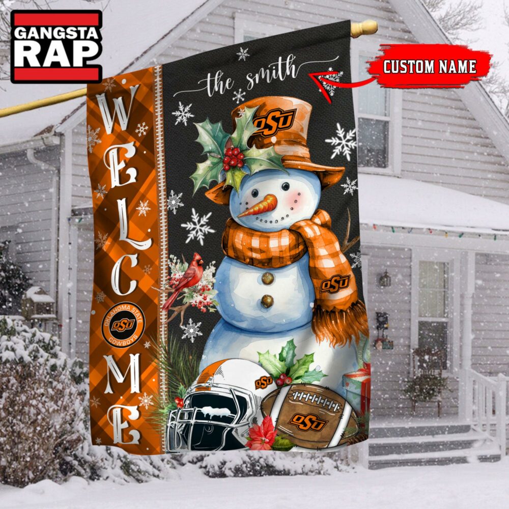 NCAA Oklahoma State Cowboys Snownan Football Team Christmas Flag, Sport Christmas Flag This high-quality flag is crafted from durable, weather-resistant fabric, perfect for indoor or outdoor display. Featuring vibrant colors and sharp detail, it adds a bold statement to any space, whether flying in your yard or hanging on a wall, celebrating your pride or personal style.