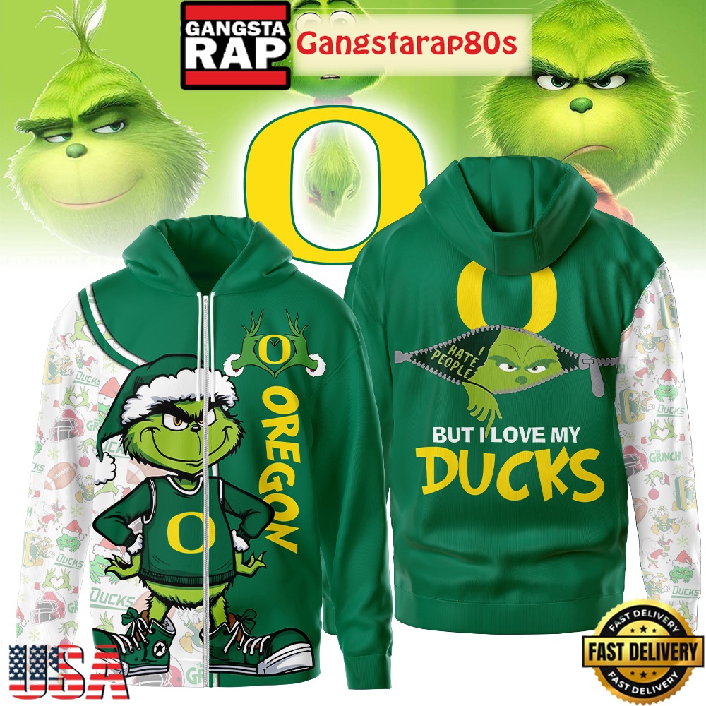NCAA Oregon Ducks Funny Grinch Football 2025-2026 Zip Hoodie Shirt