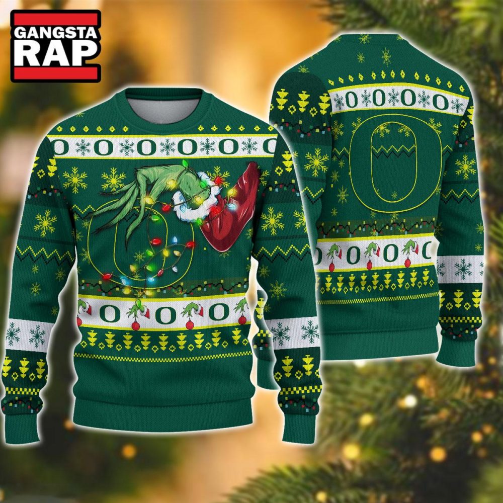 Photos Of Free NCAA Oregon Ducks Grinch Hand Ugly Christmas Sweater