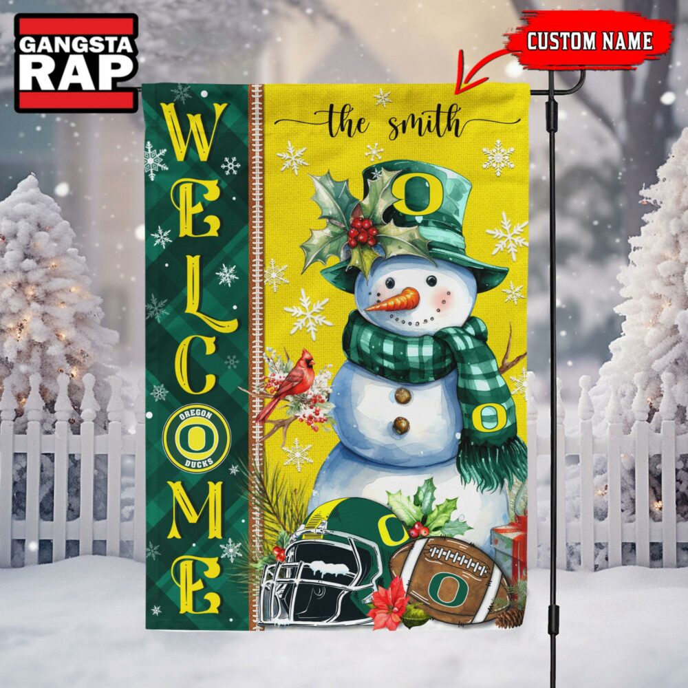Product details: NCAA Oregon Ducks Snownan Football Team Christmas Flag, Sport Christmas Flag
