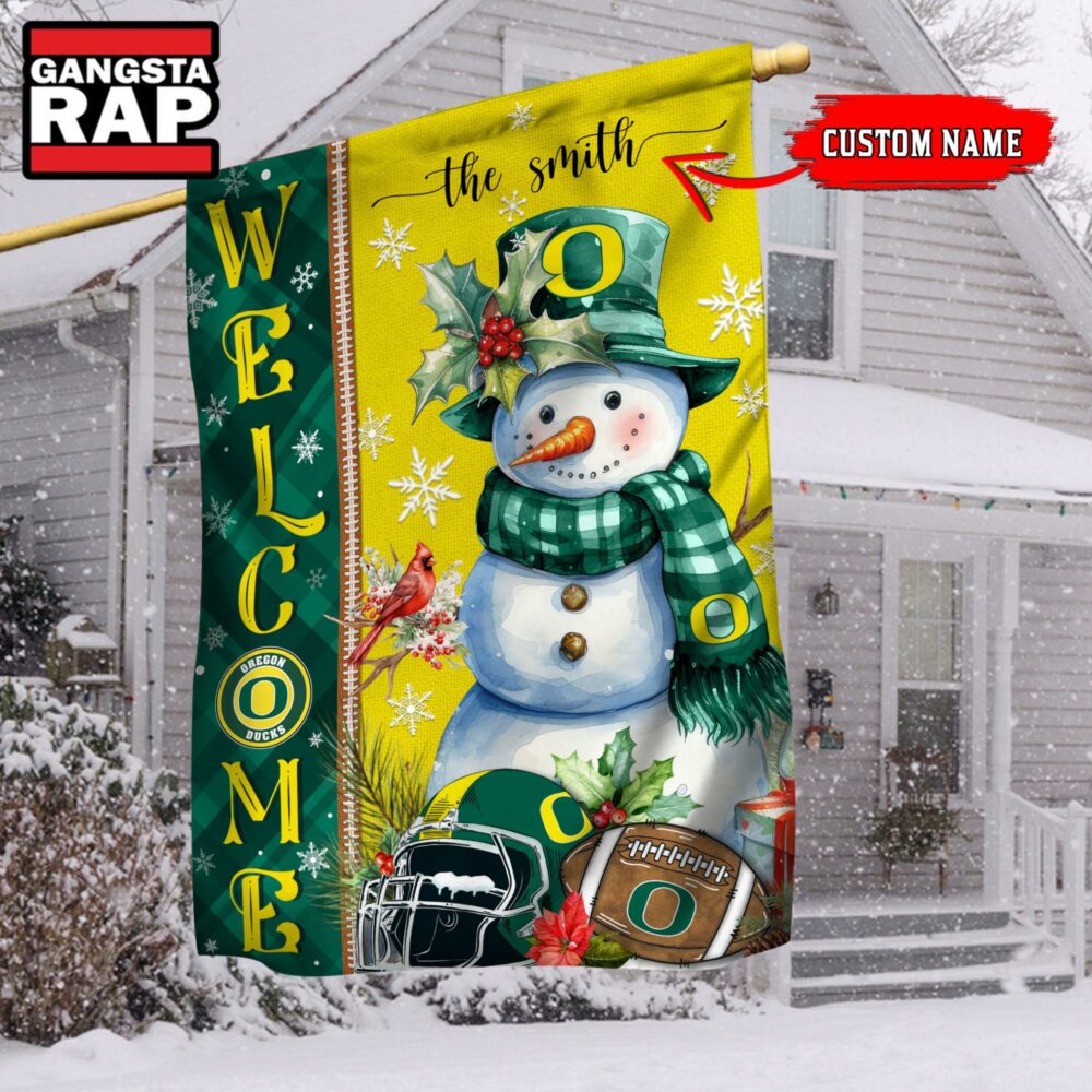 Photos Of NCAA Oregon Ducks Snownan Football Team Christmas Flag, Sport Christmas Flag