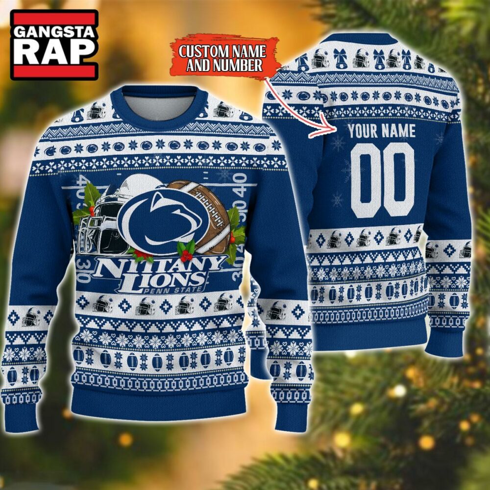 NCAA Penn State Nittany Lions Football Team Custom Name Number New Ugly Christmas Sweater Introducing our Ugly Christmas Sweater, the ultimate festive statement piece. Made from soft, comfortable fabric, it features fun and quirky holiday-themed designs that are sure to spread cheer. Perfect for holiday parties or cozying up by the fire, this sweater adds a playful touch to your winter wardrobe. Embrace the holiday spirit with our Ugly Christmas Sweater, where joy meets style.