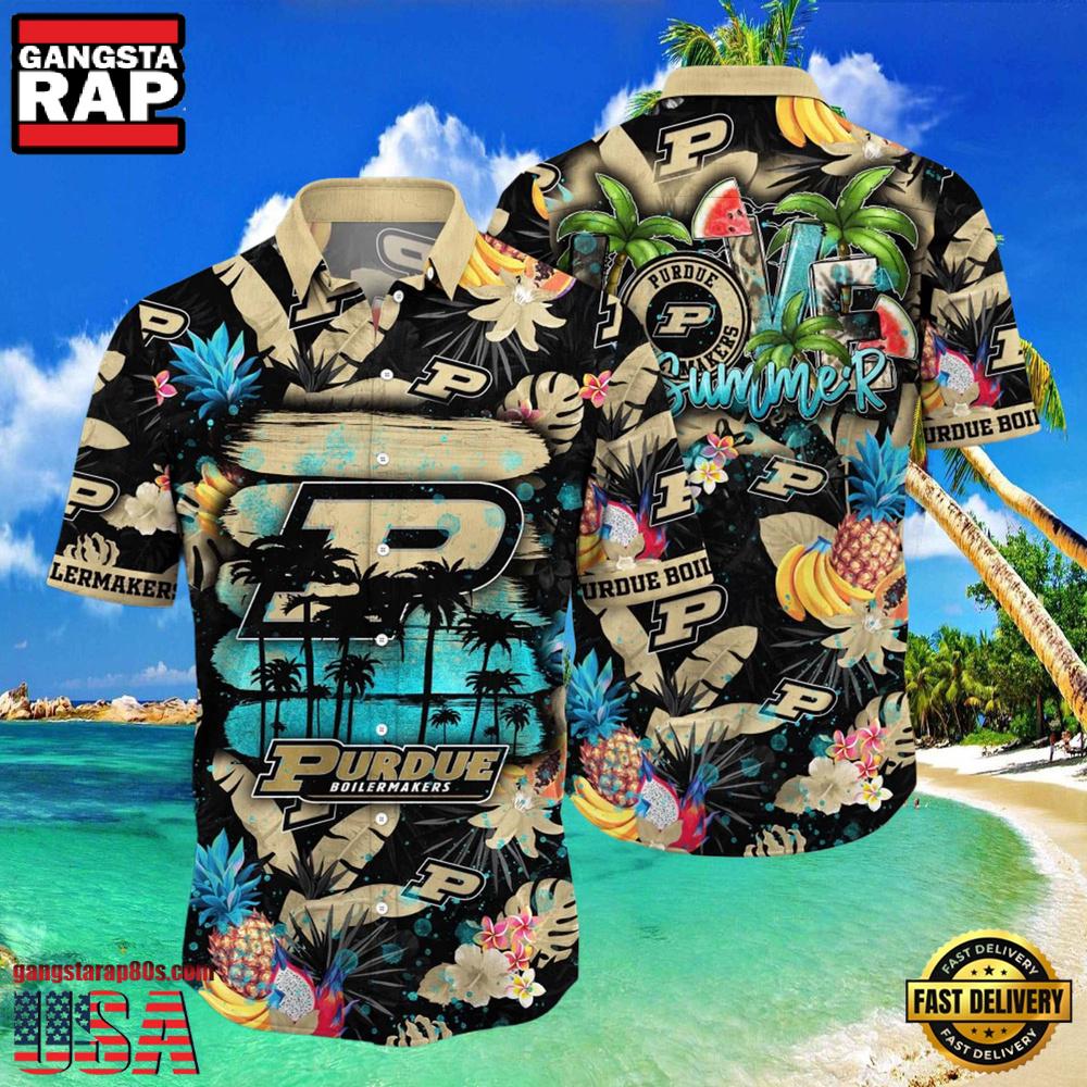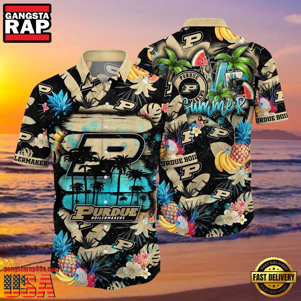 This shirt is perfect for alumni, students, and long-time fans who appreciate a fusion of athletic dedication and tropical appeal. Whether you are tailgating during the NCAA season, attending a summer barbeque, or looking for a standout piece for vacation, this shirt caters to the diverse preferences of Purdue fans everywhere.