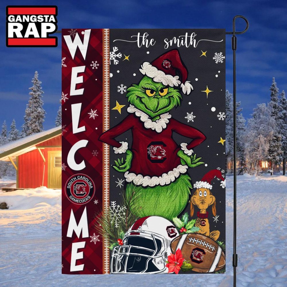 Product details: NCAA South Carolina Gamecocks Football Grinch Christmas Custom Flag