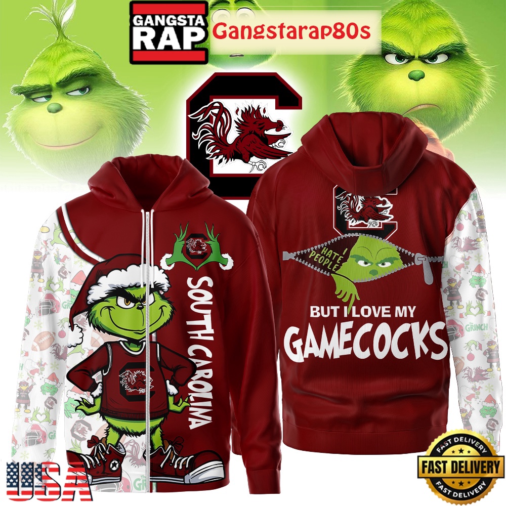 NCAA South Carolina Gamecocks Funny Grinch Football 2025-2026 Zip Hoodie Shirt