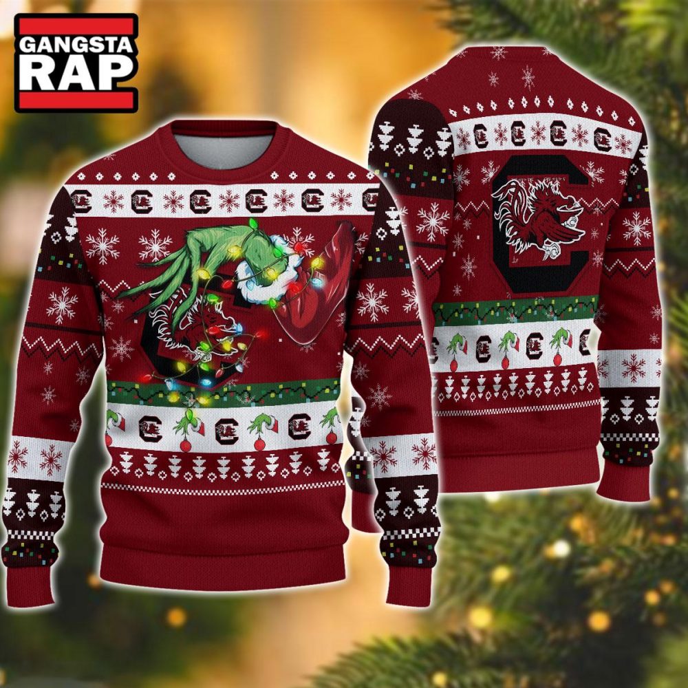 NCAA South Carolina Gamecocks Grinch Hand Ugly Christmas Sweater