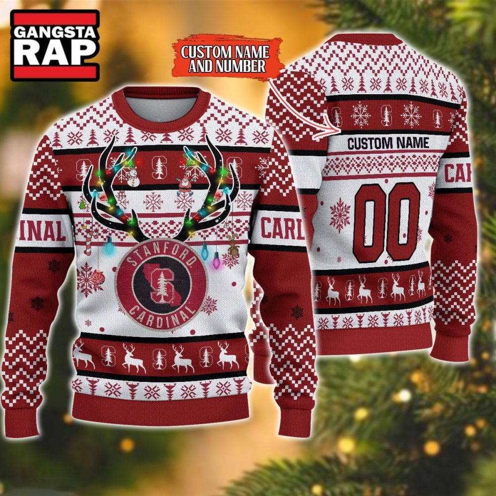 Photos Of Free NCAA Stanford Cardinal Design Logo Team Reindeer Light Ugly Christmas Sweater