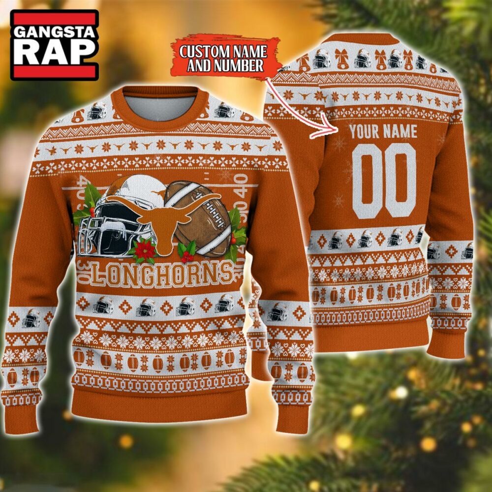Product details: NCAA Texas Longhorns Football Team Custom Name Number New Ugly Christmas Sweater