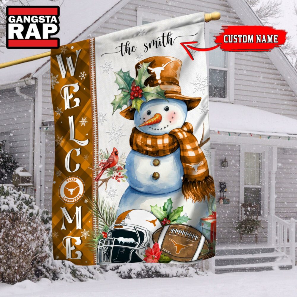 NCAA Texas Longhorns Snownan Football Team Christmas Flag, Sport Christmas Flag This high-quality flag is crafted from durable, weather-resistant fabric, perfect for indoor or outdoor display. Featuring vibrant colors and sharp detail, it adds a bold statement to any space, whether flying in your yard or hanging on a wall, celebrating your pride or personal style.