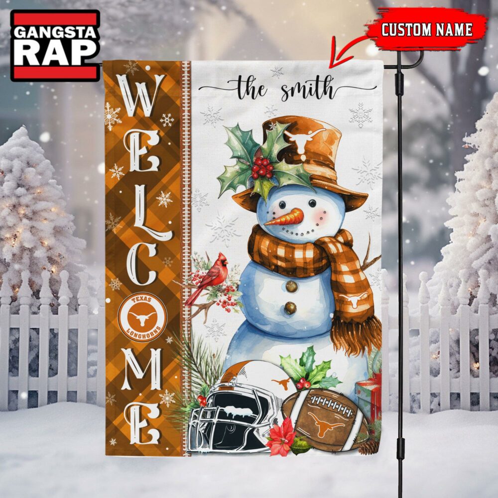 Photos Of NCAA Texas Longhorns Snownan Football Team Christmas Flag, Sport Christmas Flag