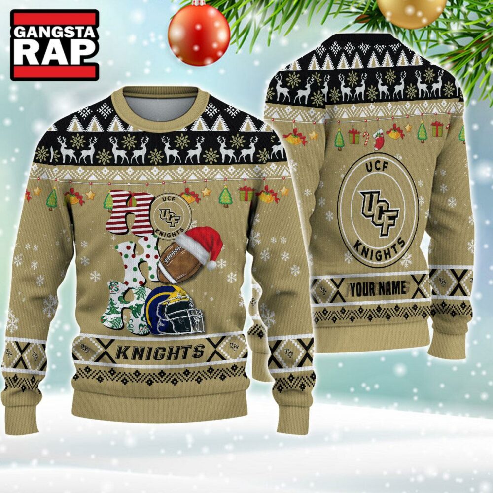 NCAA UCF Knights Football Team HO HO HO Santa Claus Ugly Christmas Sweater Introducing our Ugly Christmas Sweater, the ultimate festive statement piece. Made from soft, comfortable fabric, it features fun and quirky holiday-themed designs that are sure to spread cheer. Perfect for holiday parties or cozying up by the fire, this sweater adds a playful touch to your winter wardrobe. Embrace the holiday spirit with our Ugly Christmas Sweater, where joy meets style.