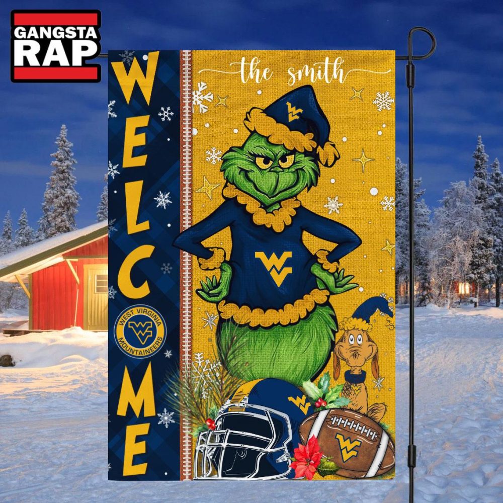 NCAA West Virginia Mountaineers Football Grinch Christmas Custom Flag This high-quality flag is crafted from durable, weather-resistant fabric, perfect for indoor or outdoor display. Featuring vibrant colors and sharp detail, it adds a bold statement to any space, whether flying in your yard or hanging on a wall, celebrating your pride or personal style.