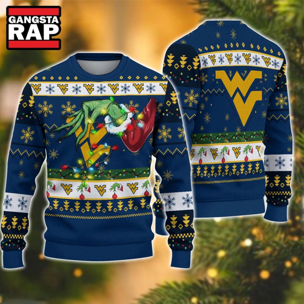 Photos Of Free NCAA West Virginia Mountaineers Grinch Hand Ugly Christmas Sweater
