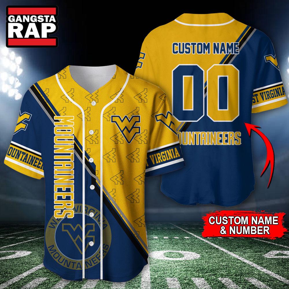 NCAA West Virginia Mountaineers Logo Team Sport Design Baseball Jersey