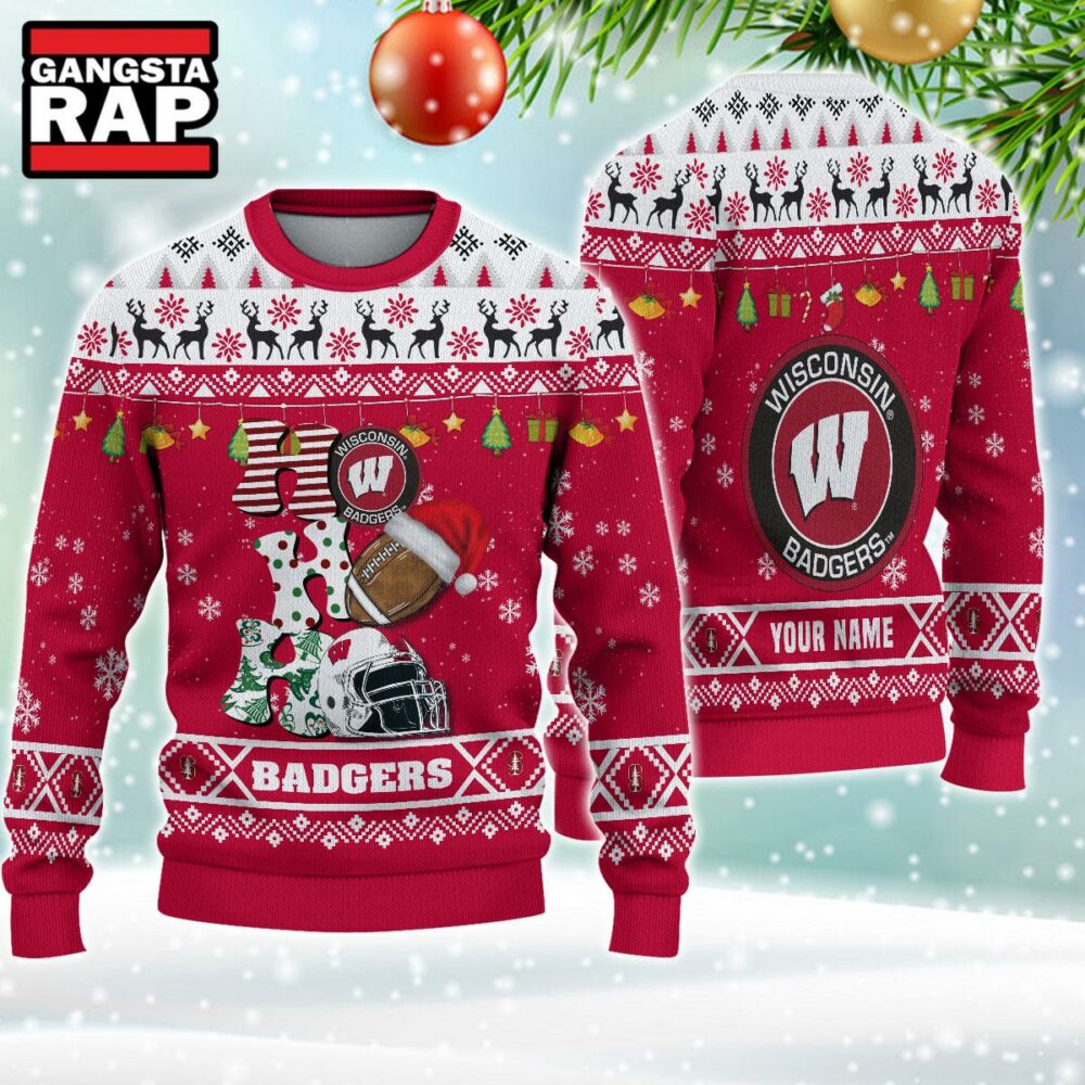 - NCAA Wisconsin Badgers Football Team Custom Name Number New Ugly Christmas Sweater