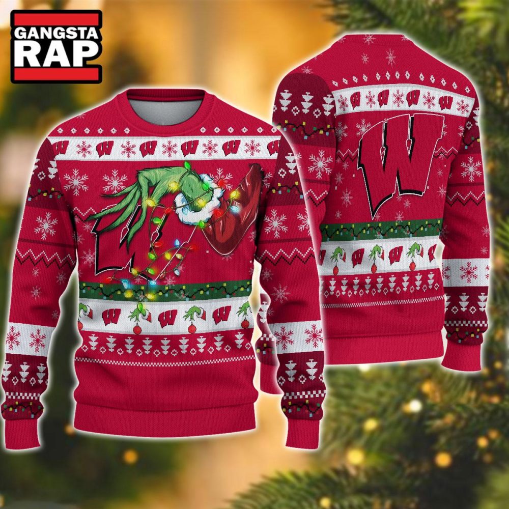 Photos Of Free NCAA Wisconsin Badgers Grinch Hand Ugly Christmas Sweater